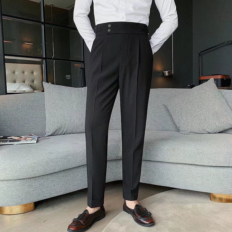 Casual Straight-leg Mens Cropped Suit Pants
